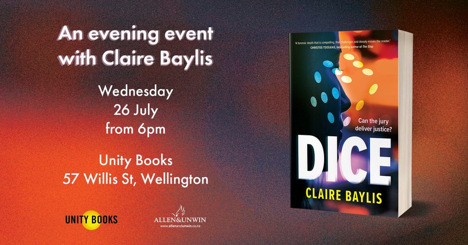 Claire Baylis wrote Dice as part of her PhD in Creative Writing at the IIML, Te Herenga Waka – Victoria University of Wellington. She has worked as a jury researcher and legal academic. She lives in Rotorua.